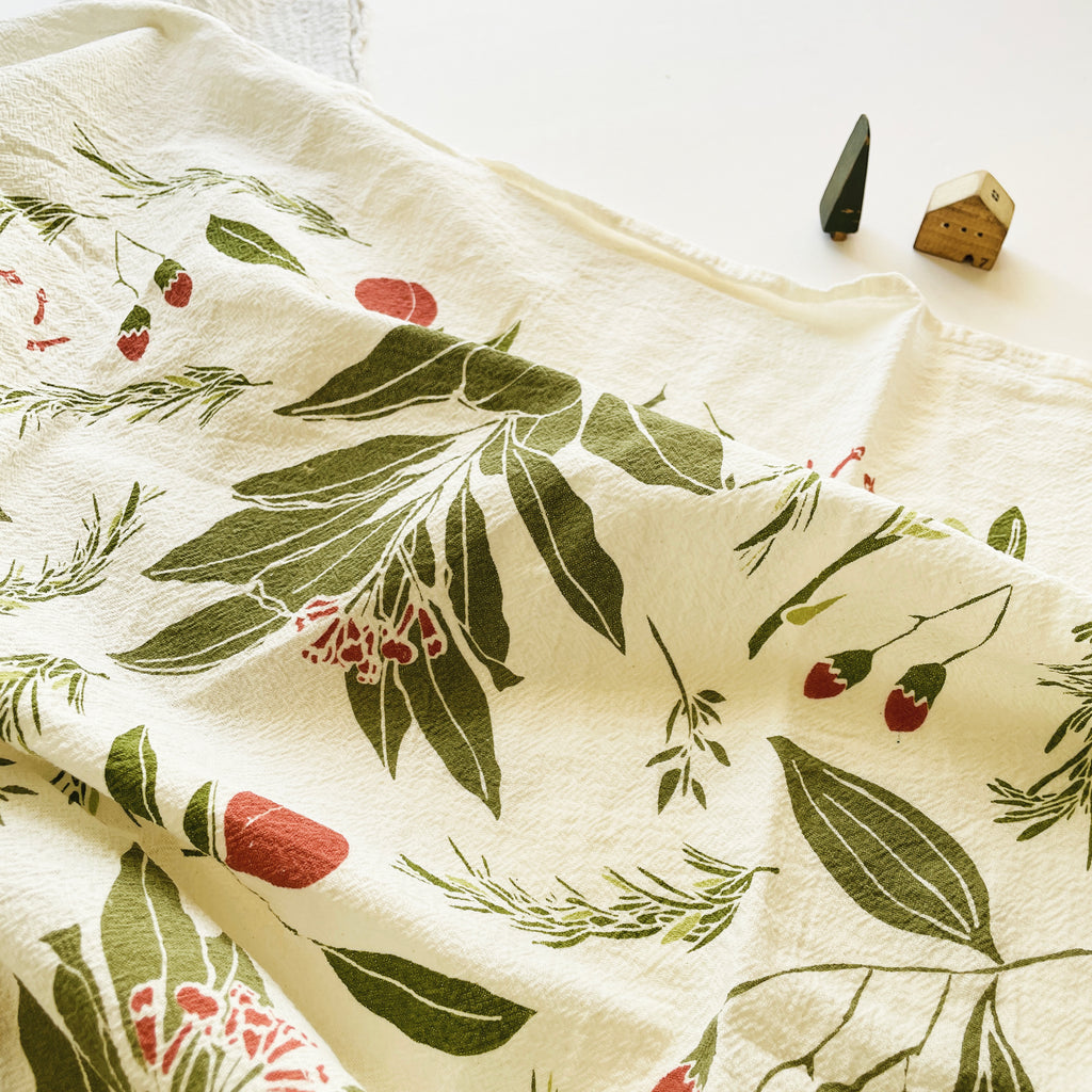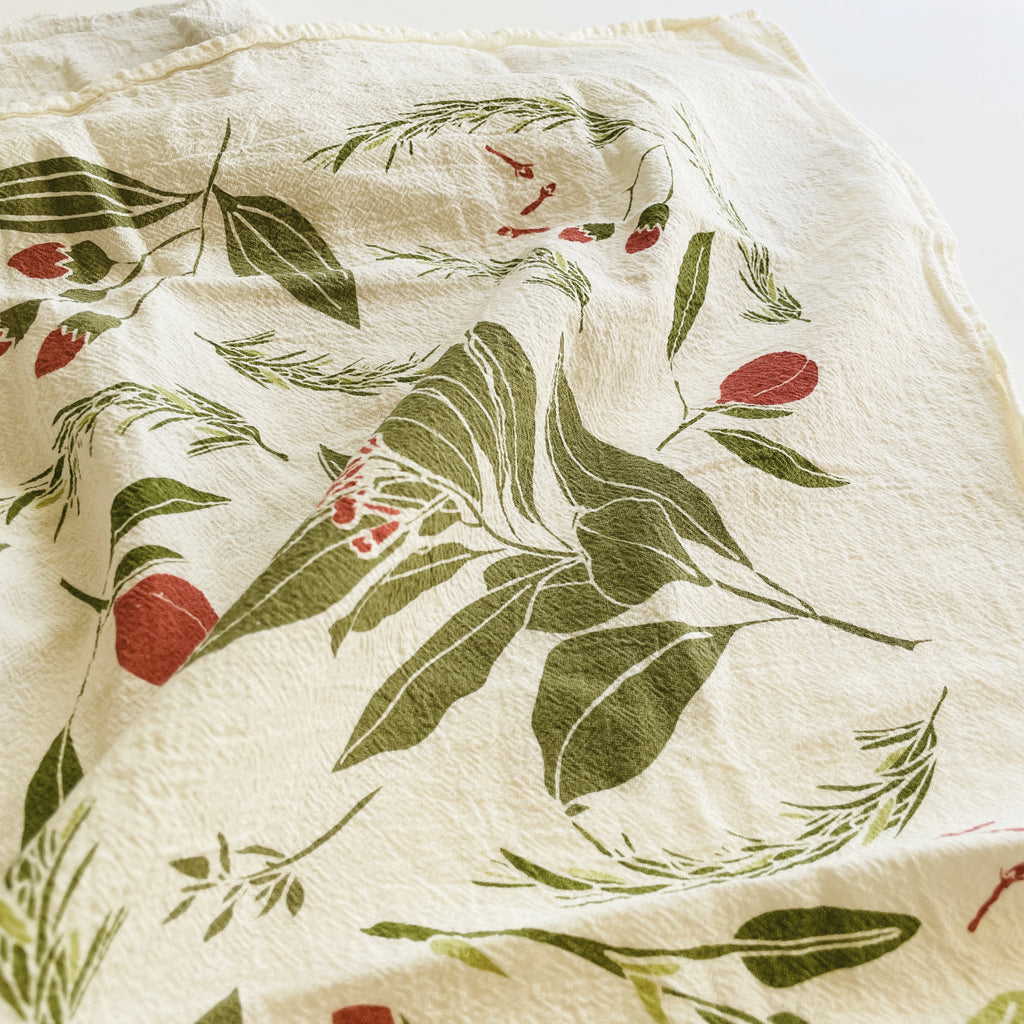 Screen printed on flour sack cotton to preserve its uniquely soft, absorbent and durable nature, this towel is machine washable and safe to bleach allowing it to hold up for everyday use.