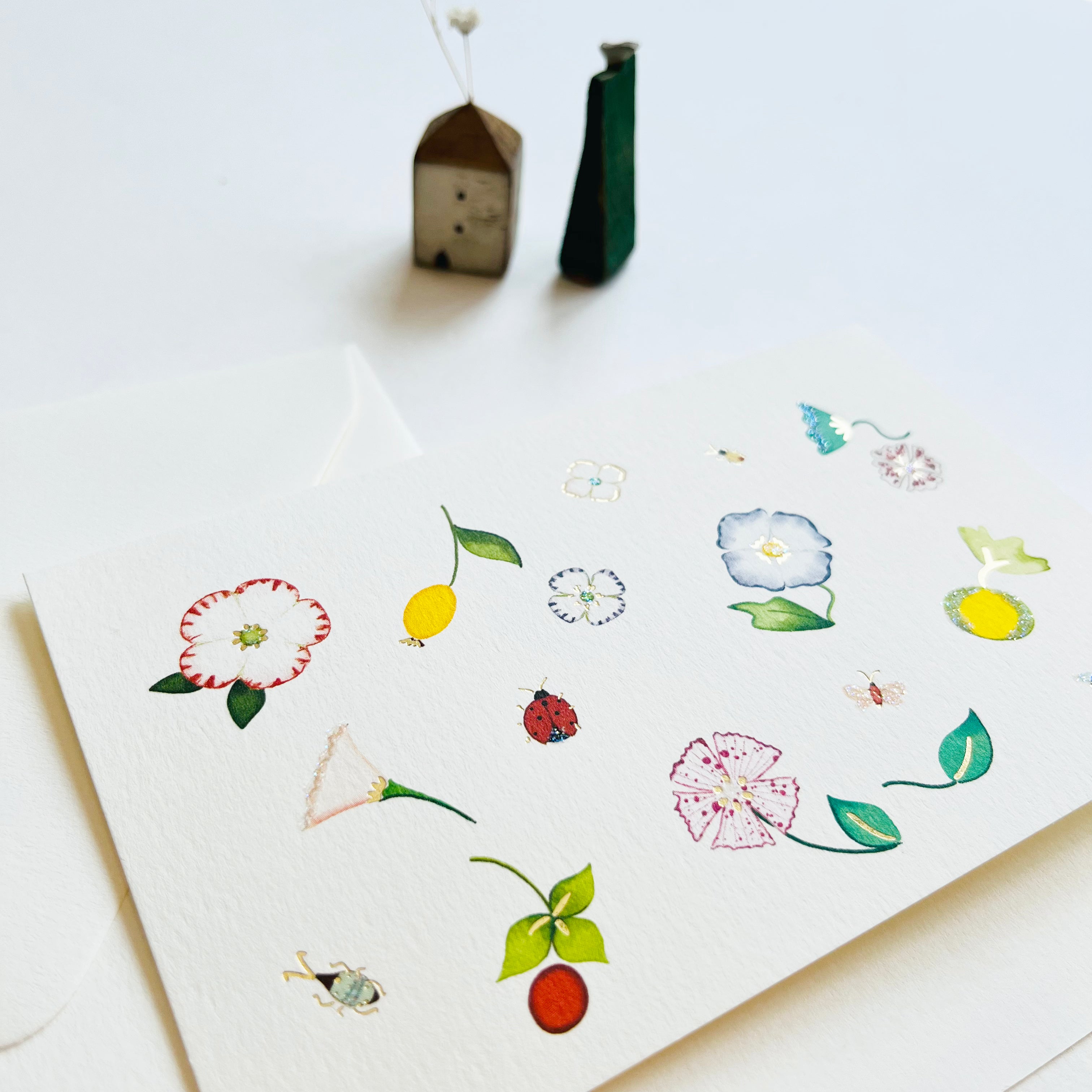 Karen Adams woodland flat notes are printed and foiled in Memphis, TN. Full color ink printed on natural white paper, letterpress printed in silver foil, and paired with natural white envelopes.