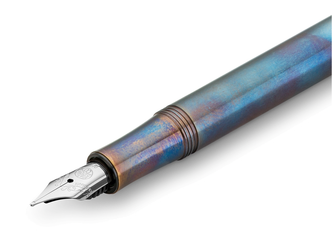 Kaweco's fountain pen in the Fireblue variant is a true individualist. Each pen is blued by hand. Due to the different temperatures acting upon the stainless steel surface, the varied colour scheme of shimmering bluish and brownish shades emerges. Through its use, this colour scheme may change over time.