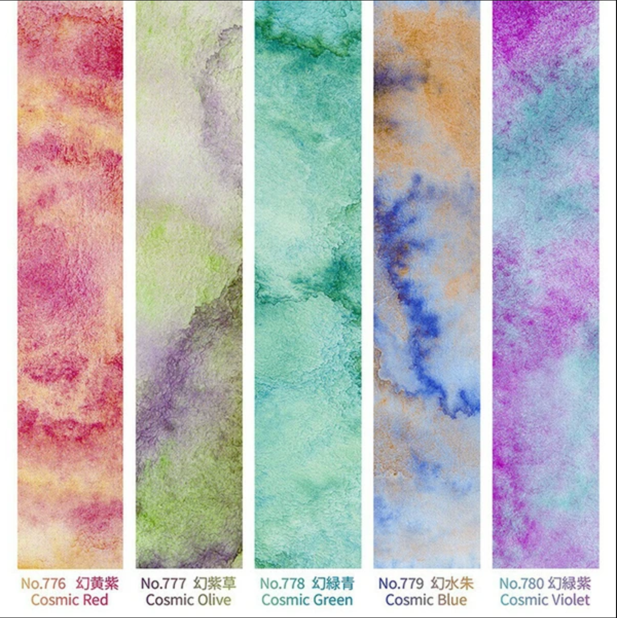 Introducing the 2024 Kuretake Gansai Tambi watercolors. These special paints create stunning granulated effects when mixed with water. Each color blend contains multiple pigments that separate on wet paper, forming unique patterns. These rich and intense paints are perfect for brush painting, illustration, and calligraphy.