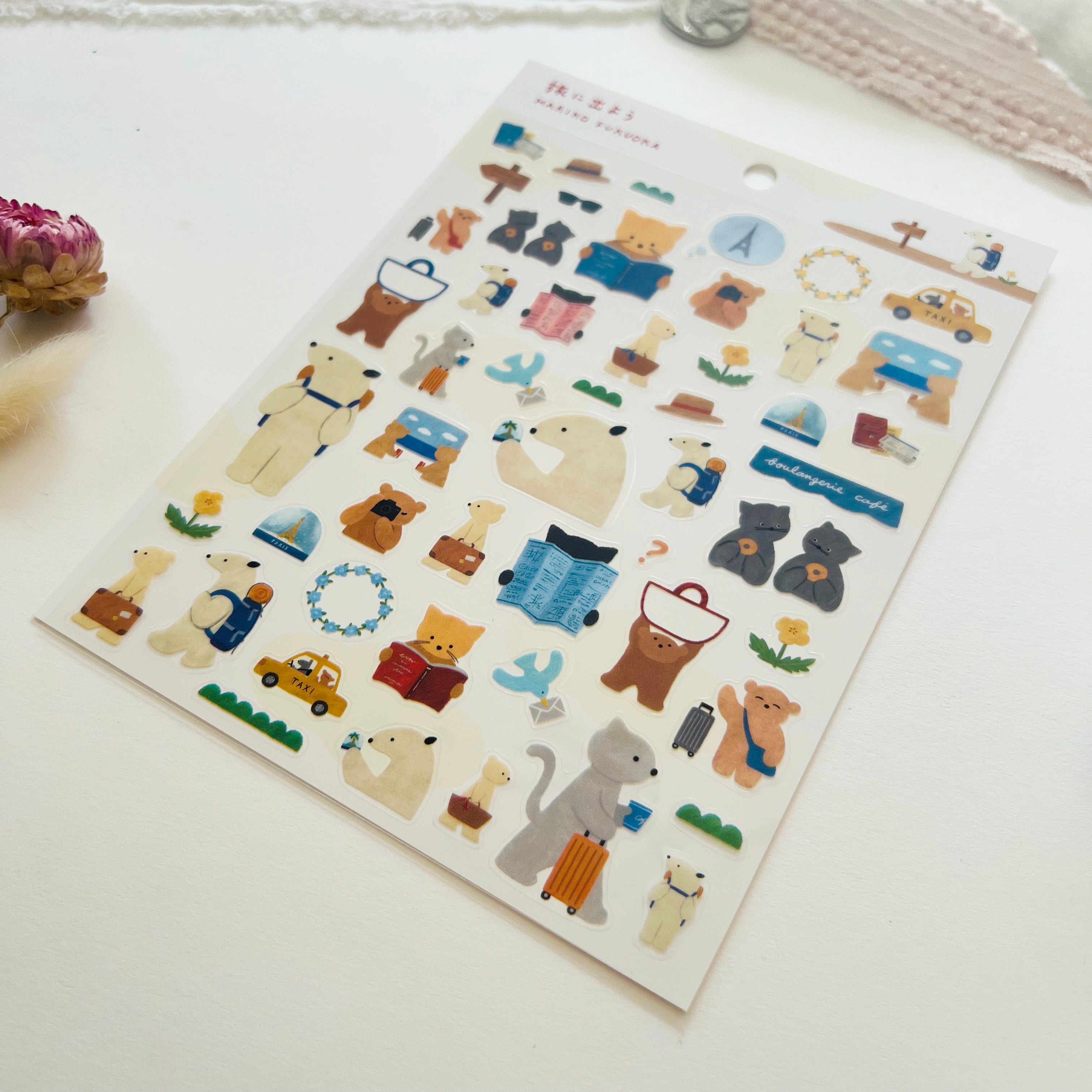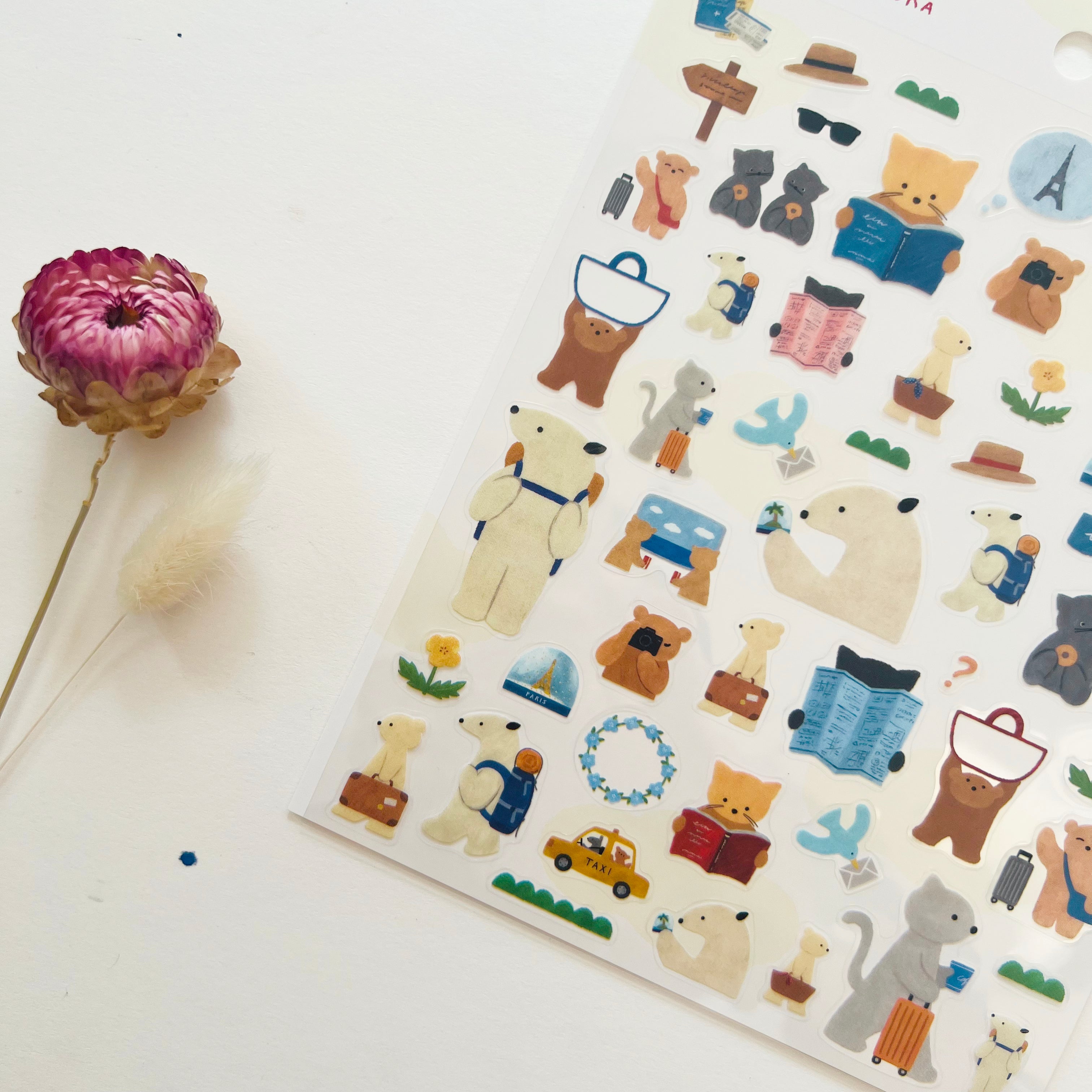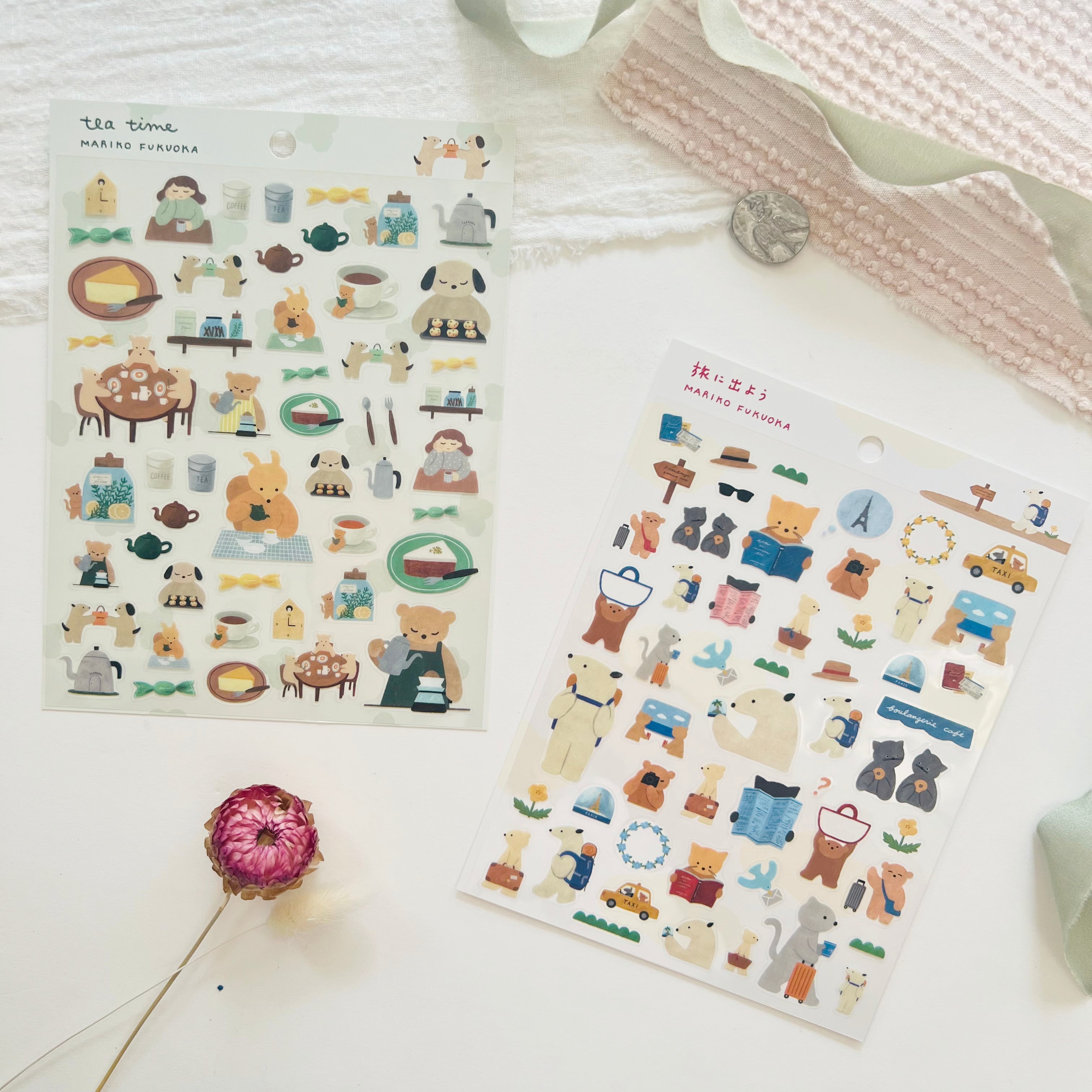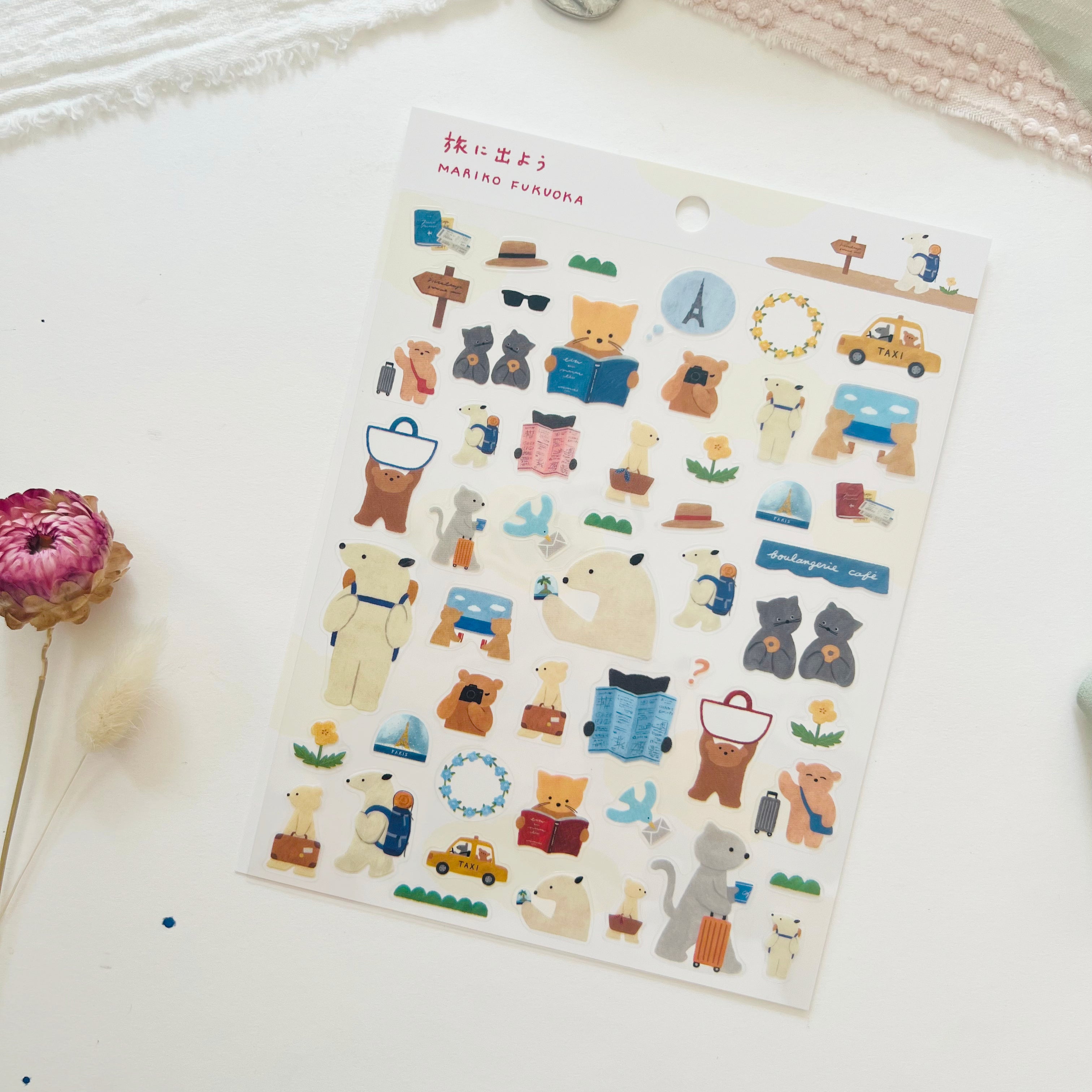 These adorable stickers by illustrator Mariko Fukuoka feature dogs and cats embarking on exciting adventures, with maps and guides in hand. Perfect for adding a playful touch to your planner, accessories, or even creating travel-themed bookmarks.
