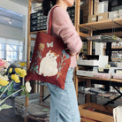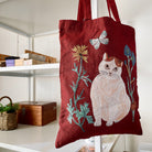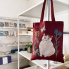 roughly woven using thick threads like a rug, giving it a softer, warmer look. The unique cats gazing intently at you are combined with various plants to create a very adorable tote.