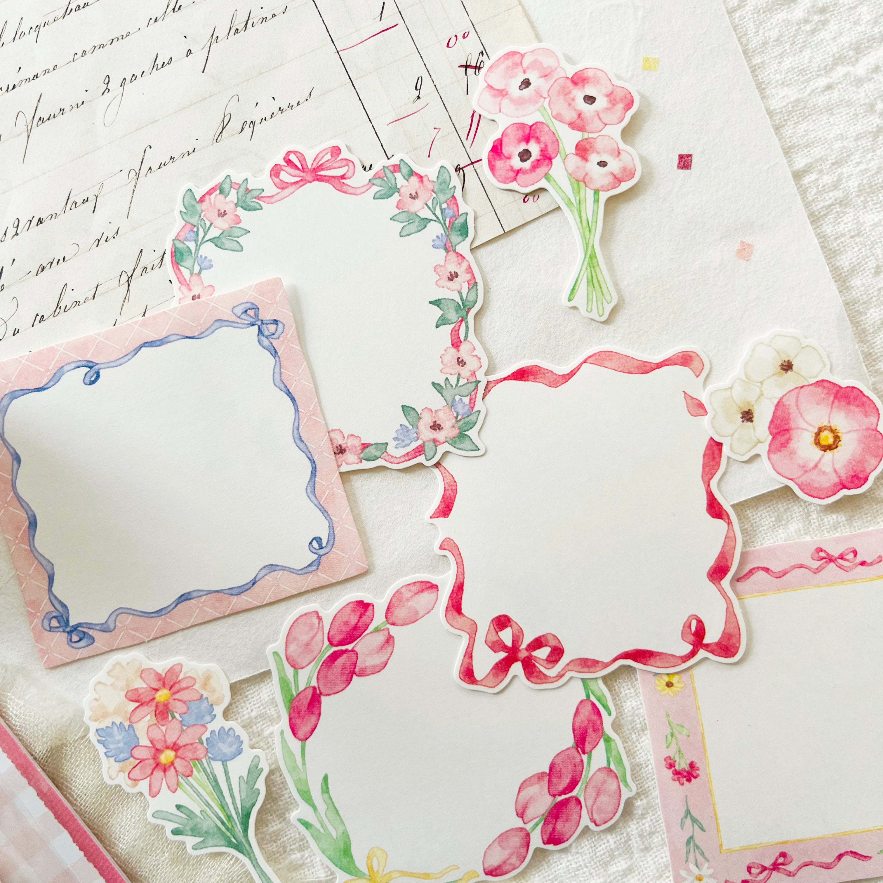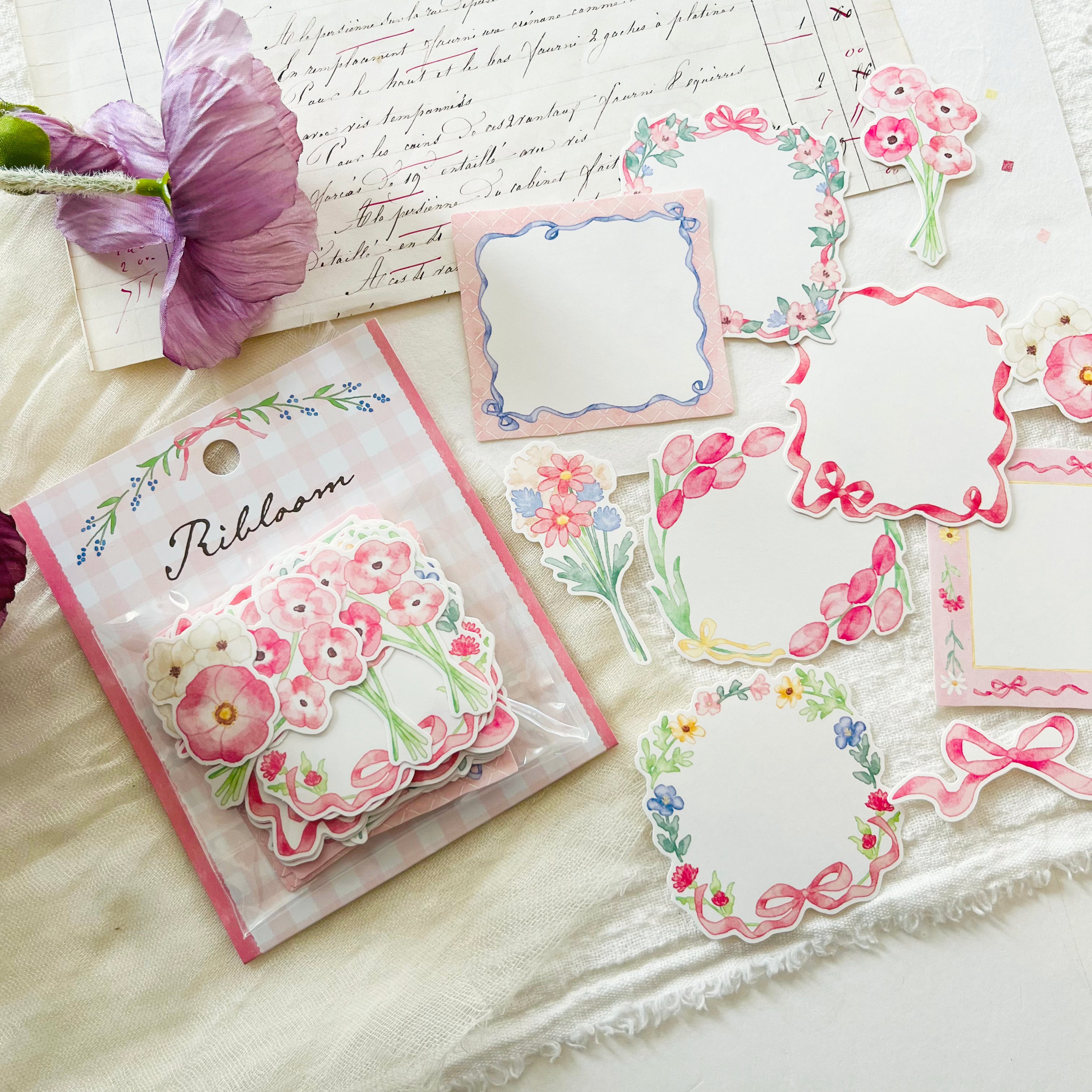 These flake seals include a variety of flake seals that can be used to decorate your journal and write notes. The designs feature a mix of flowers and ribbons.