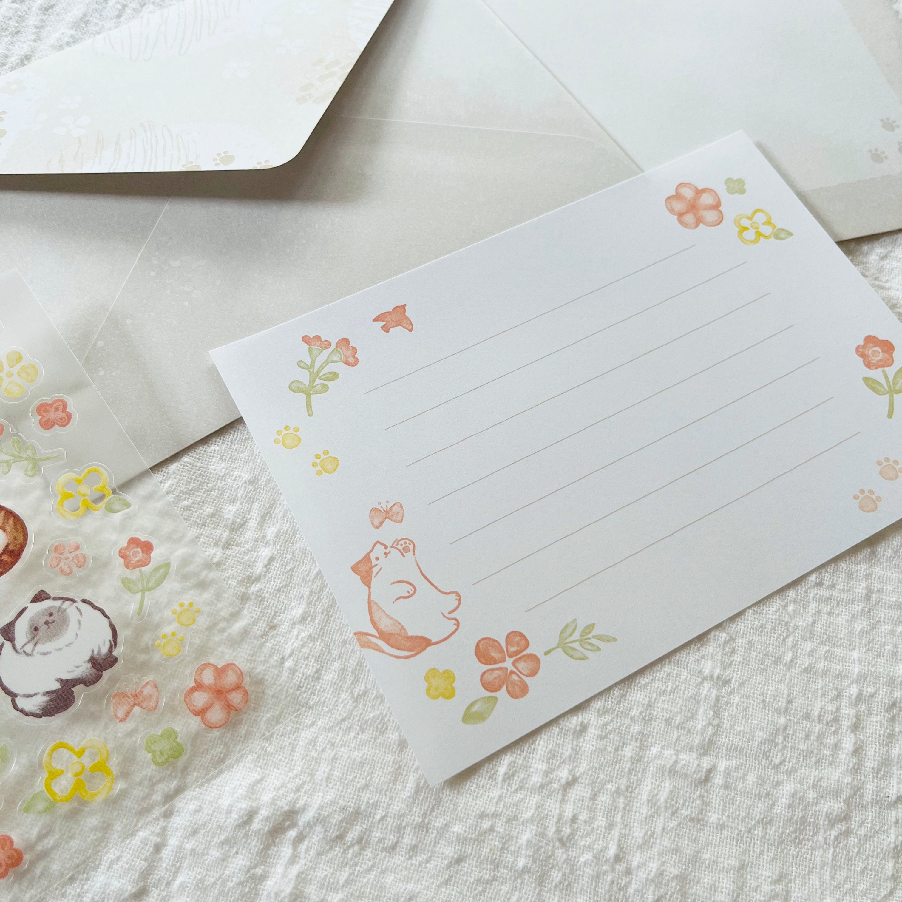 This adorable letterset is perfect set for all cat lovers. The florals and pastel colors bring a touch of Spring to all of your writing needs. This letterset includes a sticker sheet to decorate each letter uniquely.