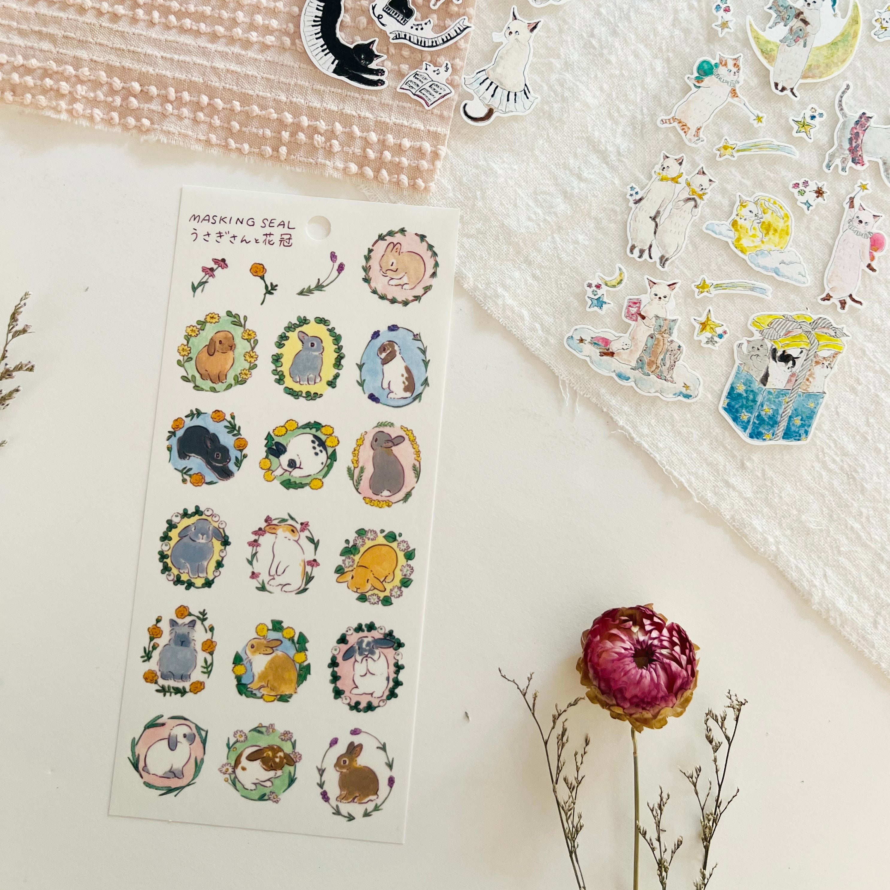Motoko Moriyama Sticker Sheet - Rabbit and Flower Crown