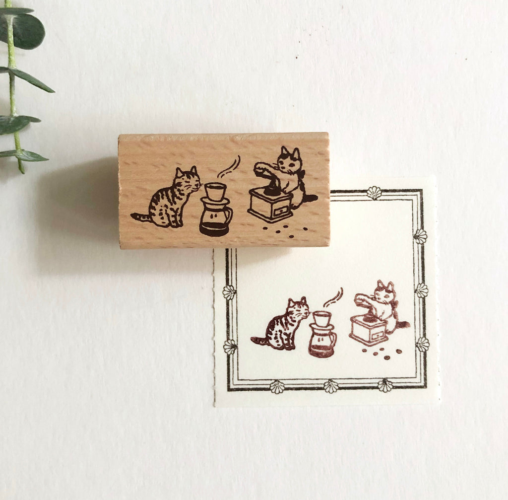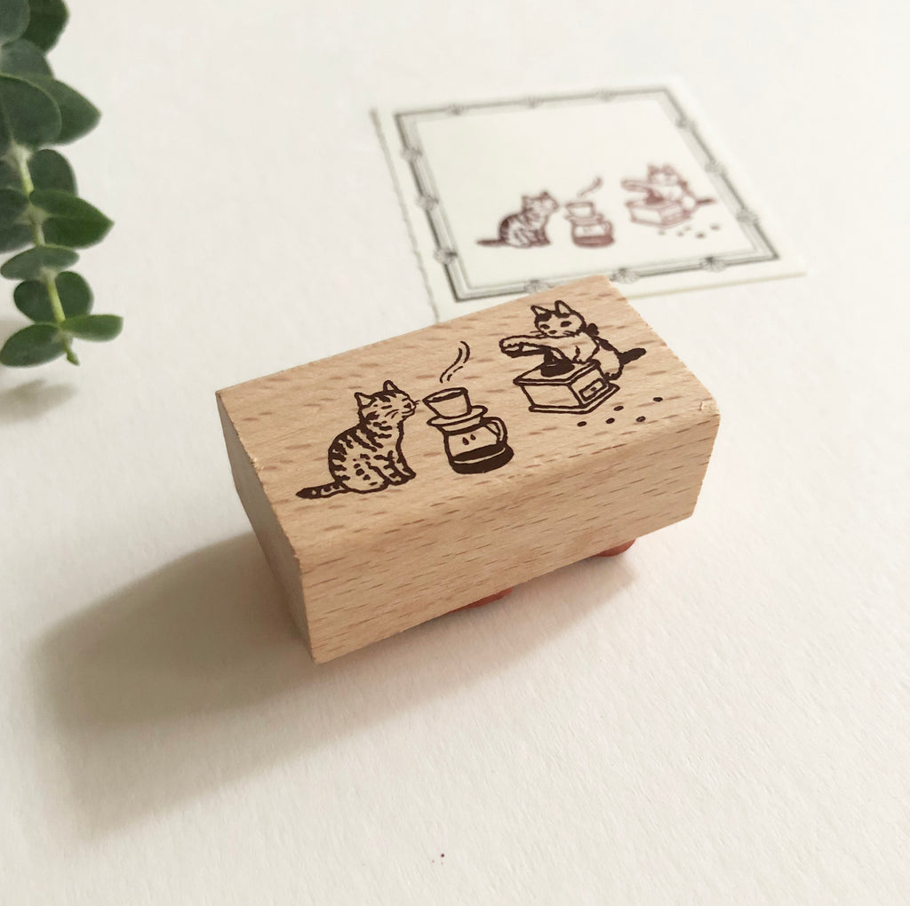 Kawaii kitten rubber stamp. Perfect detailed stamp for planner, scrapbooking, mailing, letter and packaging.