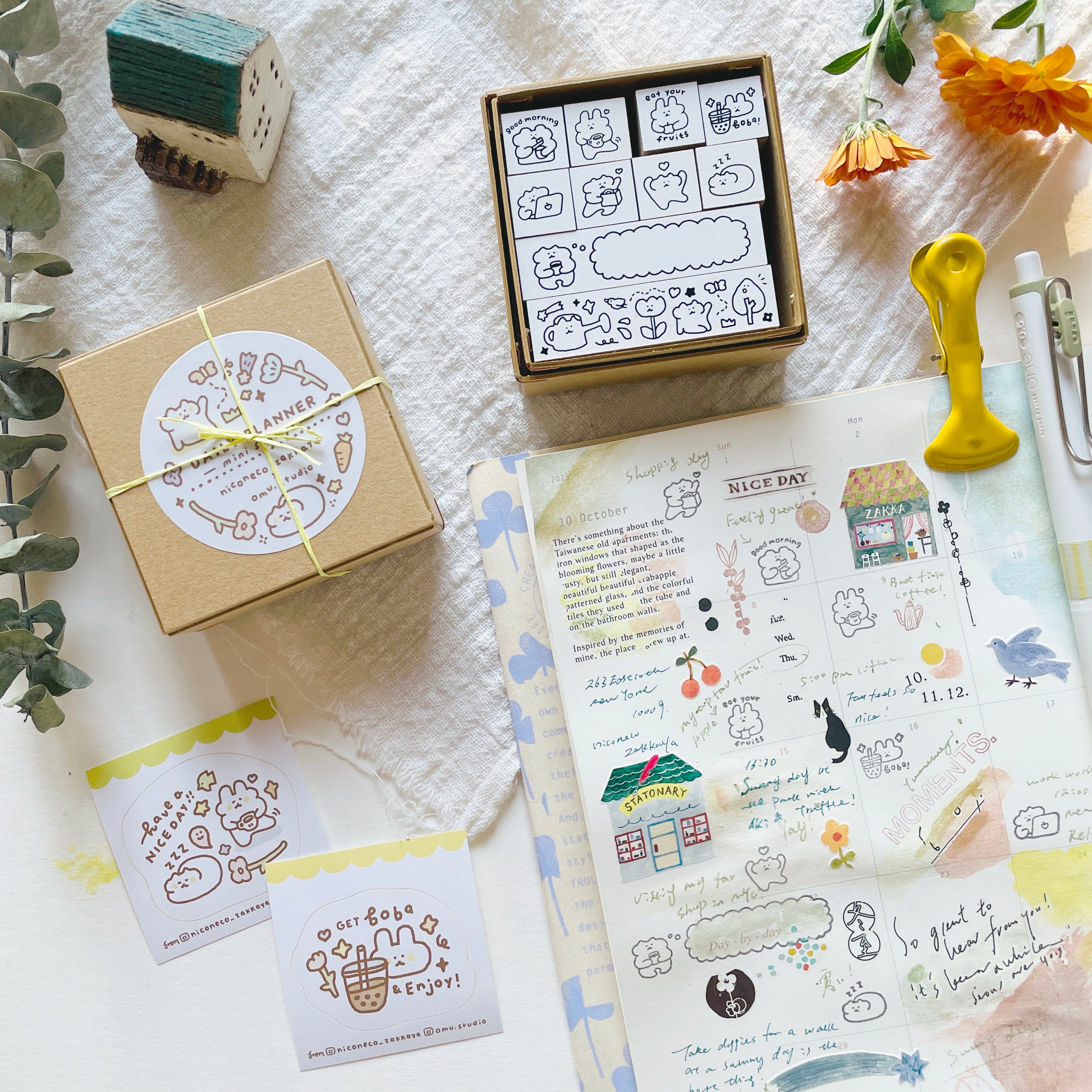 Introduce our first collaboration with Katherine, a talented artist based in New York and the creative genius behind Omu Studio. Her enchanting and heartwarming designs are infused of joy and inspiration for any creative endeavor. These petite planner stamps, adorned with Katherine's delightful illustrations, offer a wonderful opportunity to infuse your daily planner, journals, and more with an extra dose of enchantment and intricate details, adding a dash of whimsy to your everyday creations.
