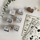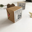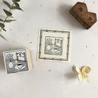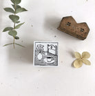 We choose black rubber for this collaboration to match Hiraoka Hitomi's unique illutrations. The merit of black rubbers is that they are long-lasting rubber and also gives a crisp and clear image for each stamping. Each stamp is hand-wrapped by us, sealed with a cute handmade Japanese gold& foil embossed paper label.