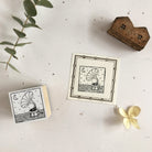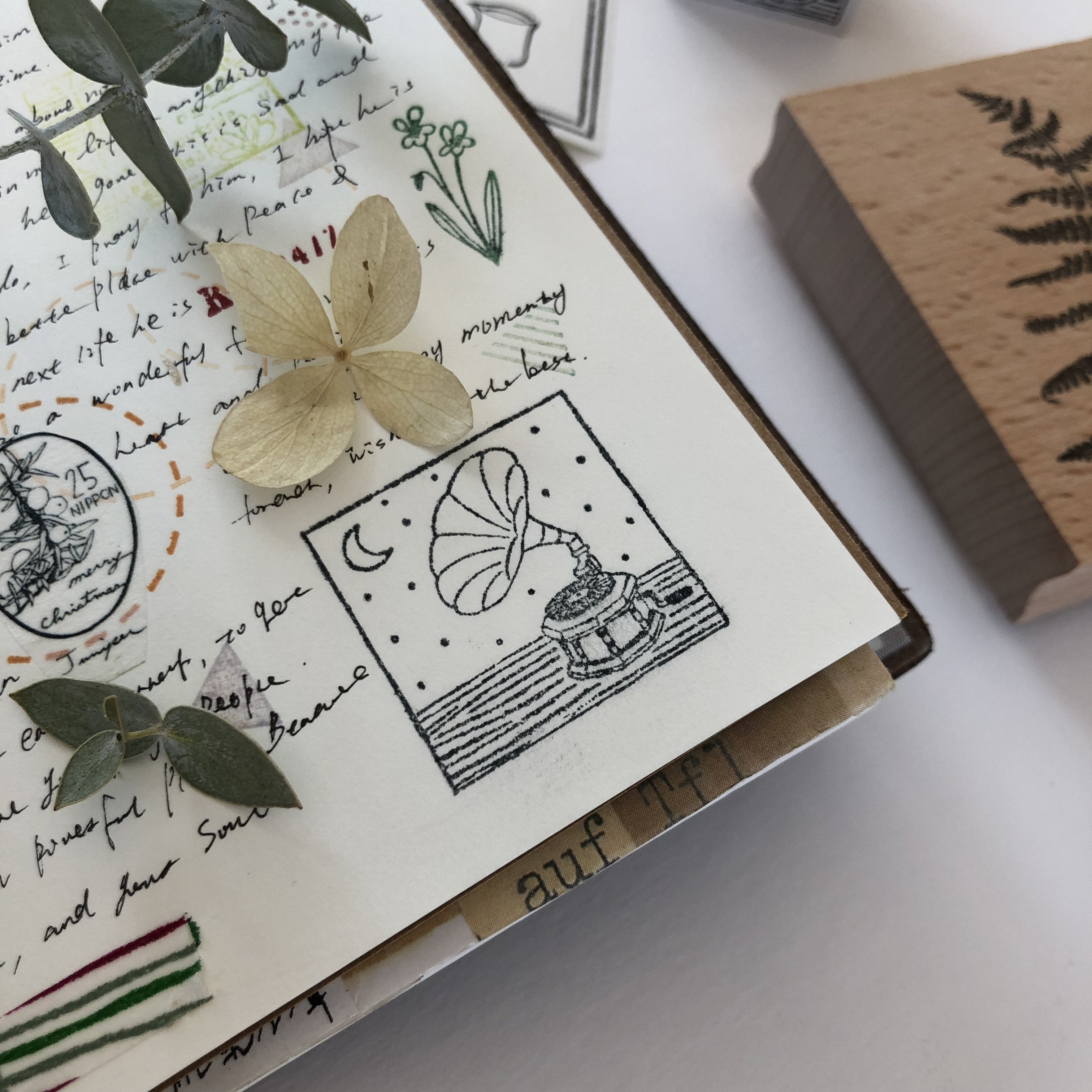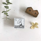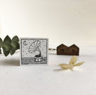 We choose black rubber for this collaboration to match Hiraoka Hitomi's unique illutrations. The merit of black rubbers is that they are long-lasting rubber and also gives a crisp and clear image for each stamping. Each stamp is hand-wrapped by us, sealed with a cute handmade Japanese gold& foil embossed paper label.