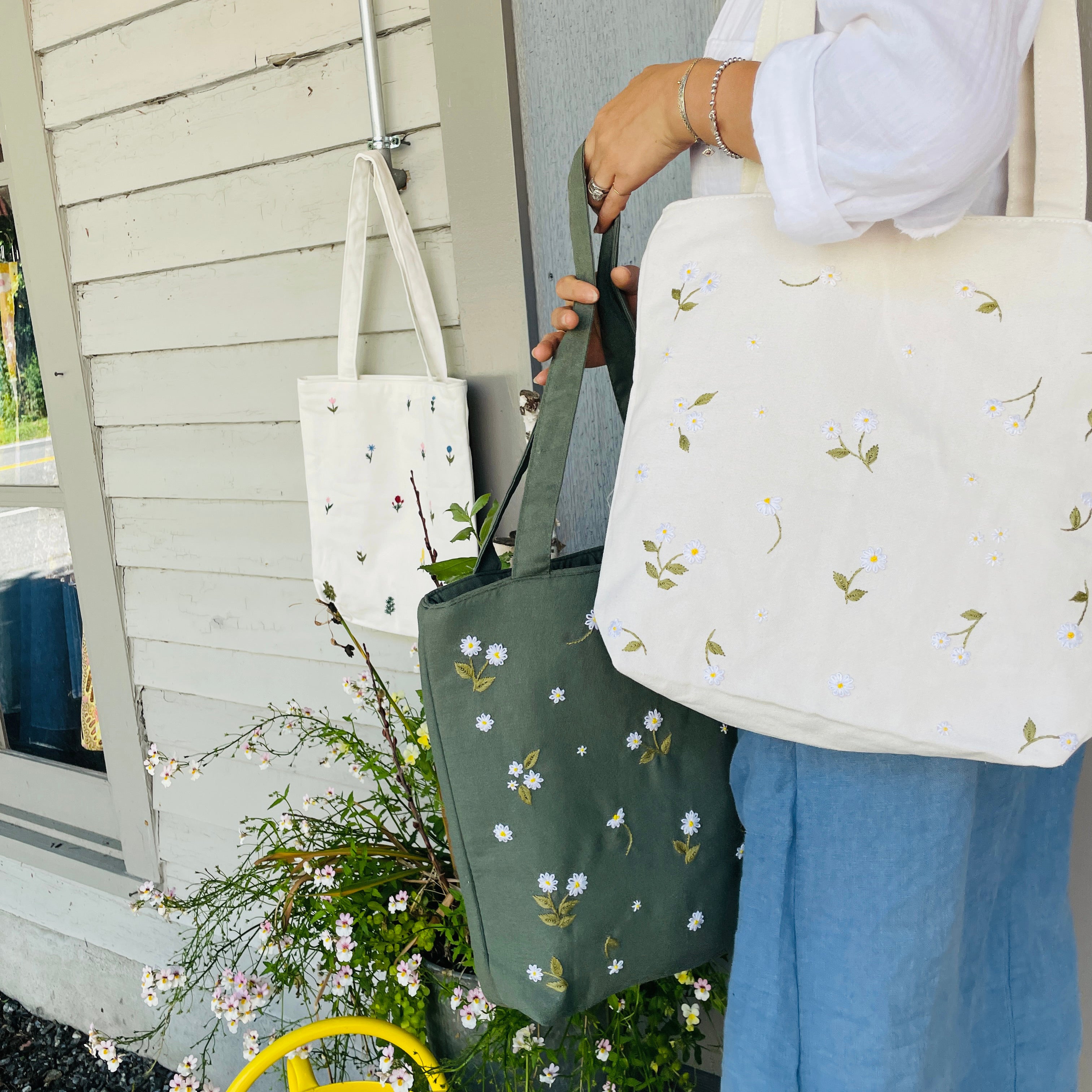 Quince Fables Embroidered Tote Bag - Daisy (Canvas)