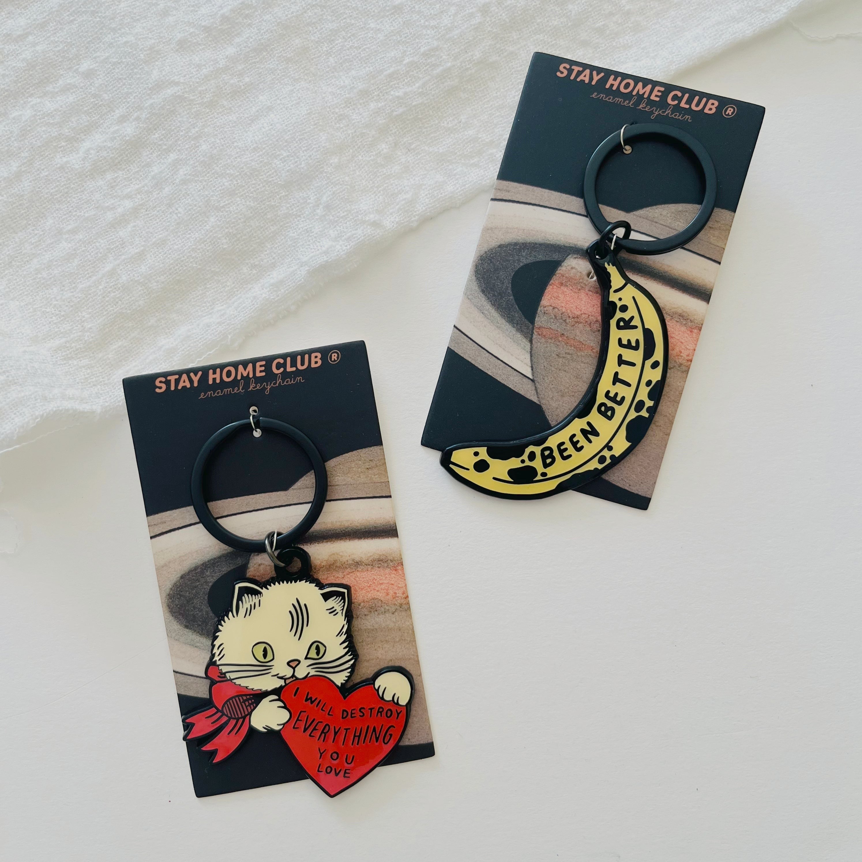 - Keychain in soft enamel with matte black metal and glossy epoxy coating.