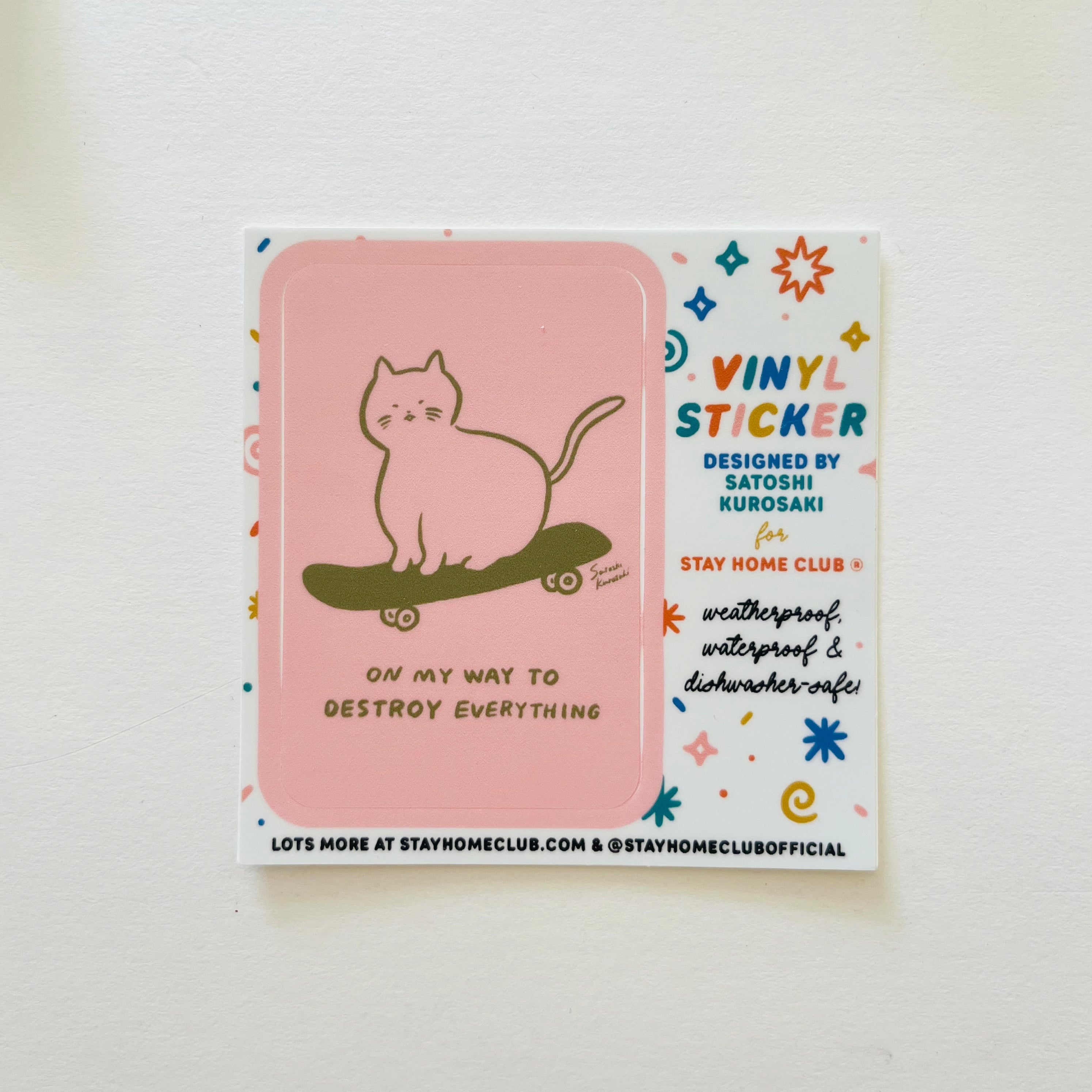 Stay Home Club Vinyl Sticker - Sk8 Cat