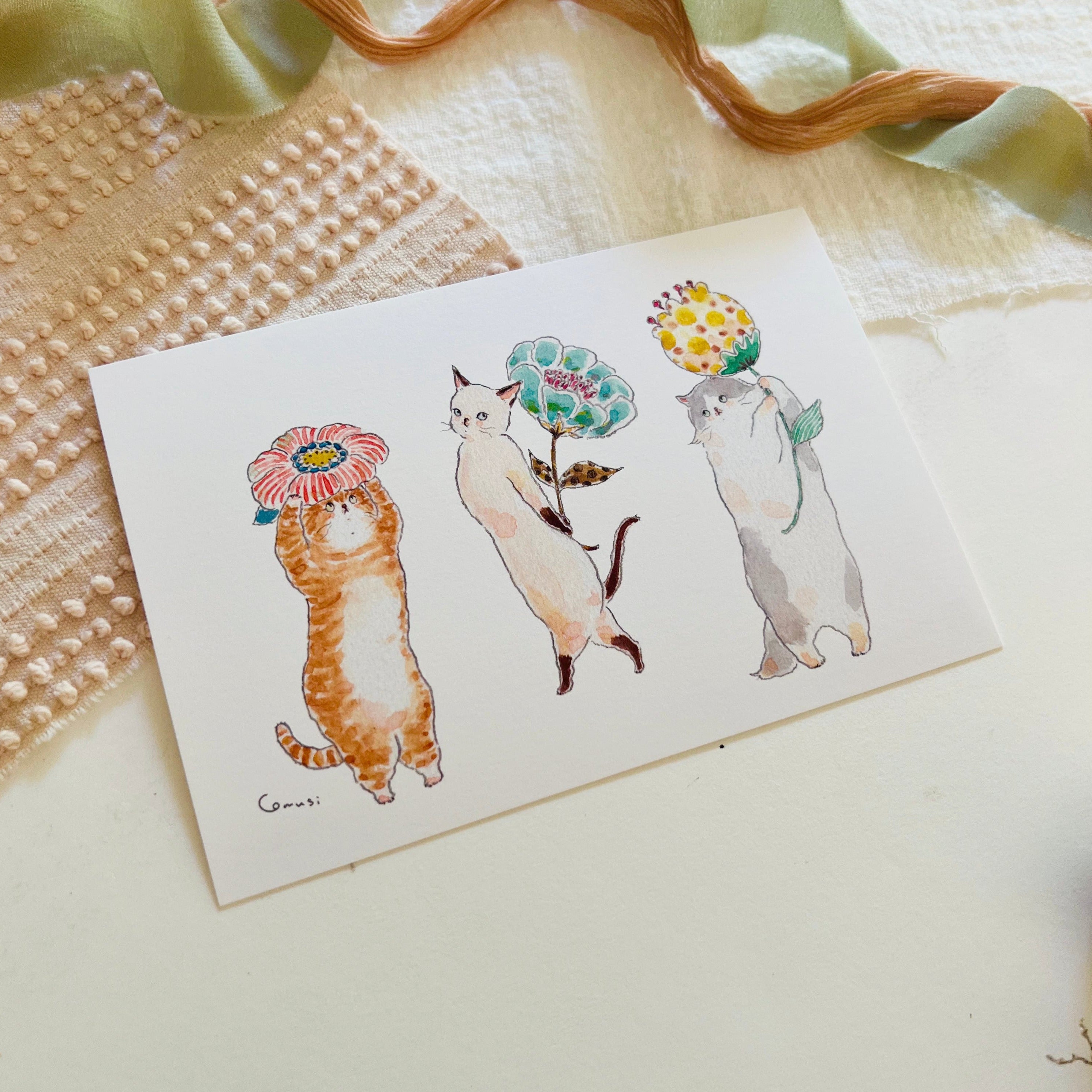 Tokoro Komugi Postcard - Flower Picking Kitten