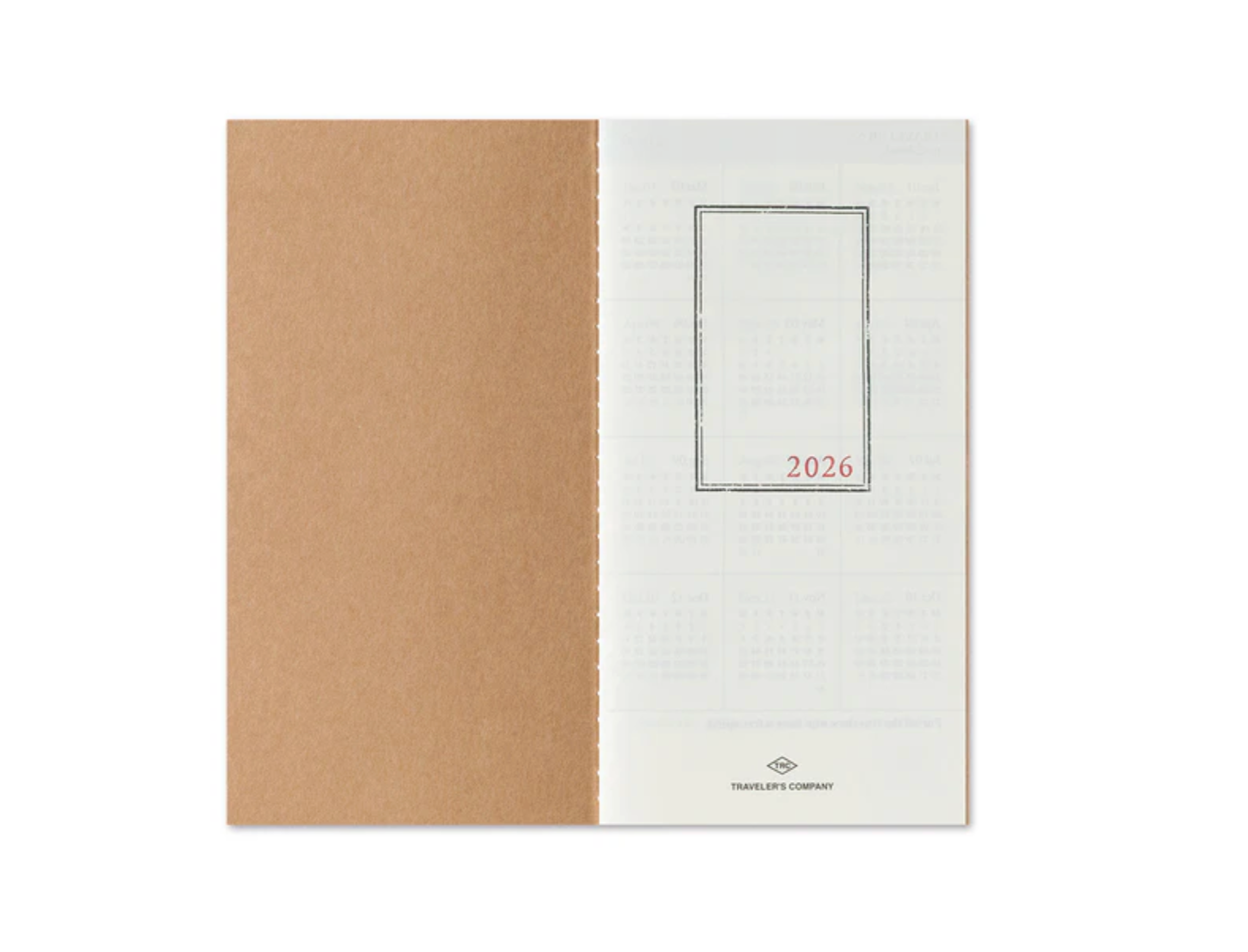 This is a 2026 Monthly Diary TRAVELER'S notebook refill with cream-colored paper. This refill is for the regular-sized Traveler's notebook.