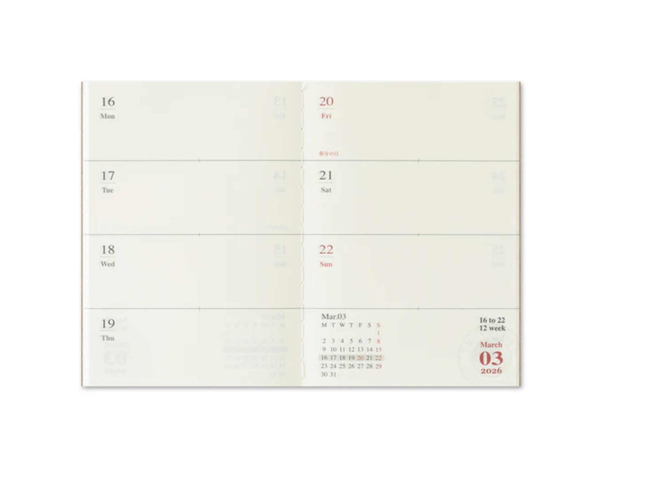 This is a 2026 Weekly Diary TRAVELER'S notebook refill with cream-colored paper. This refill is for the passport-sized TRAVELER'S Notebook.