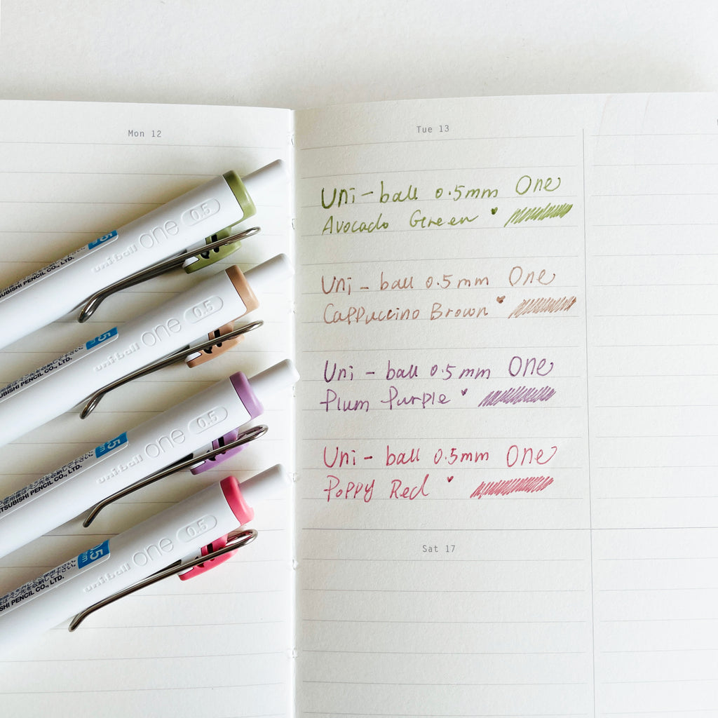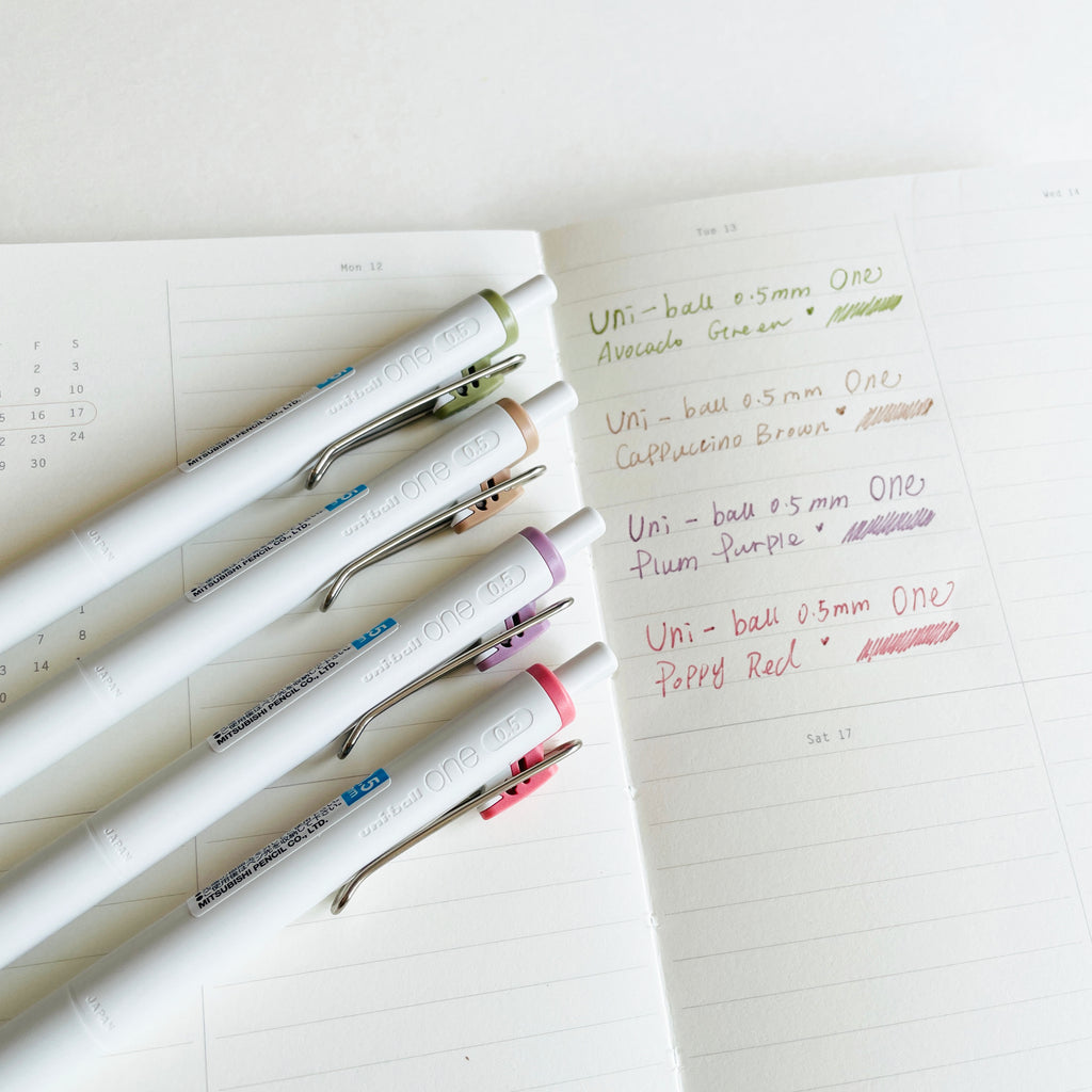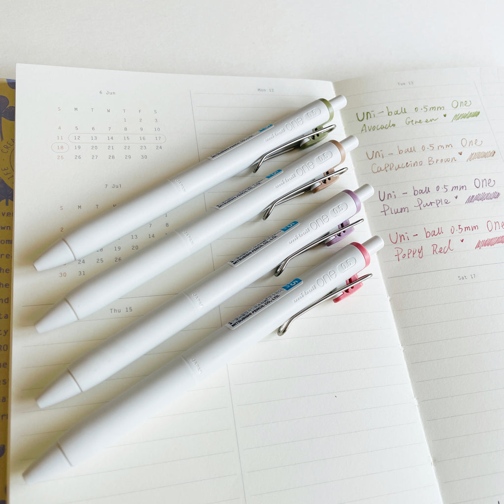 Uni One gel pens feature revolutionary vibrant pigment ink, uni One Ink, that makes dark inks look darker and bright inks look brighter. It delivers clear and bold writing without smearing or bleeding. A strong, wide-opening wire clip provides easy attachment to folders or notebooks.