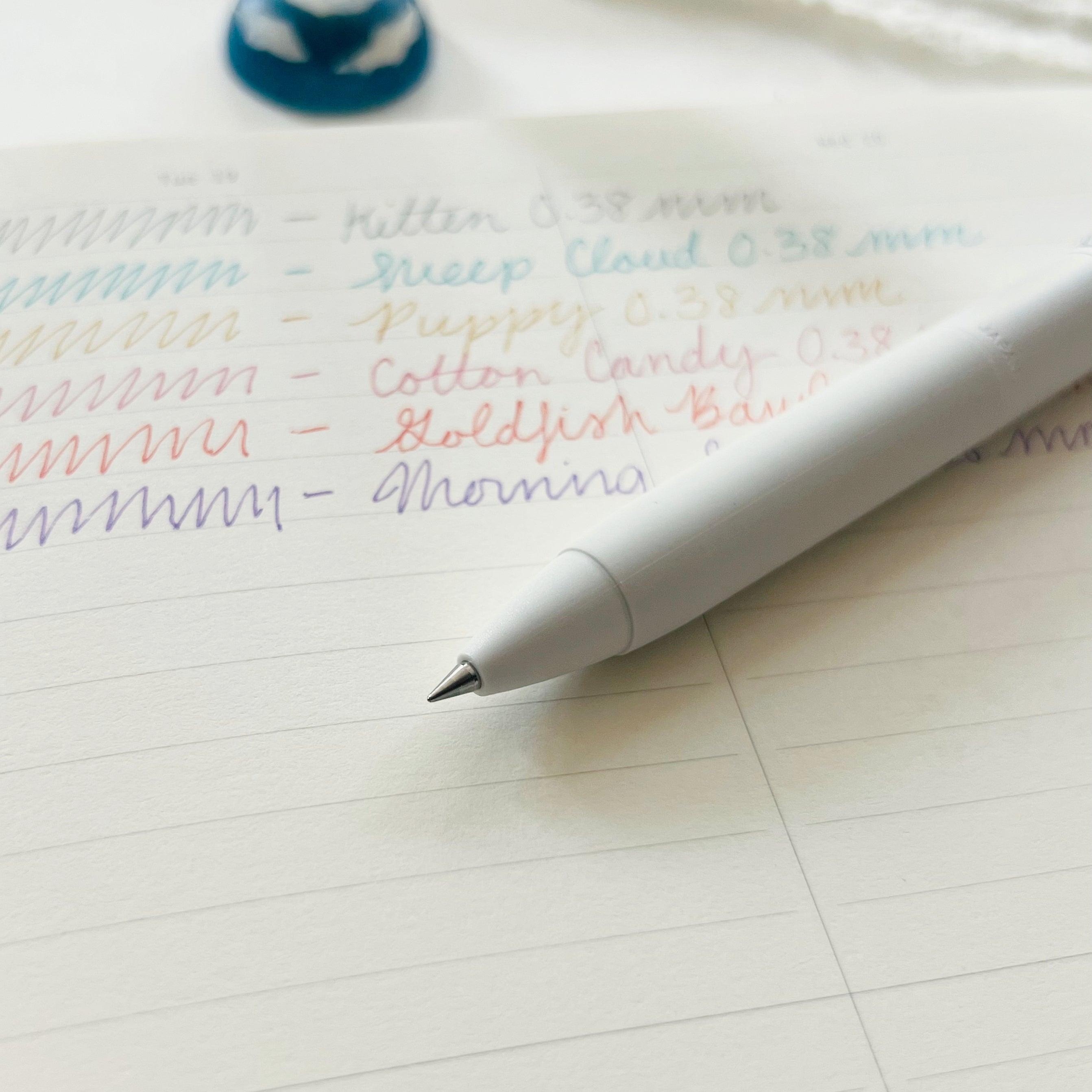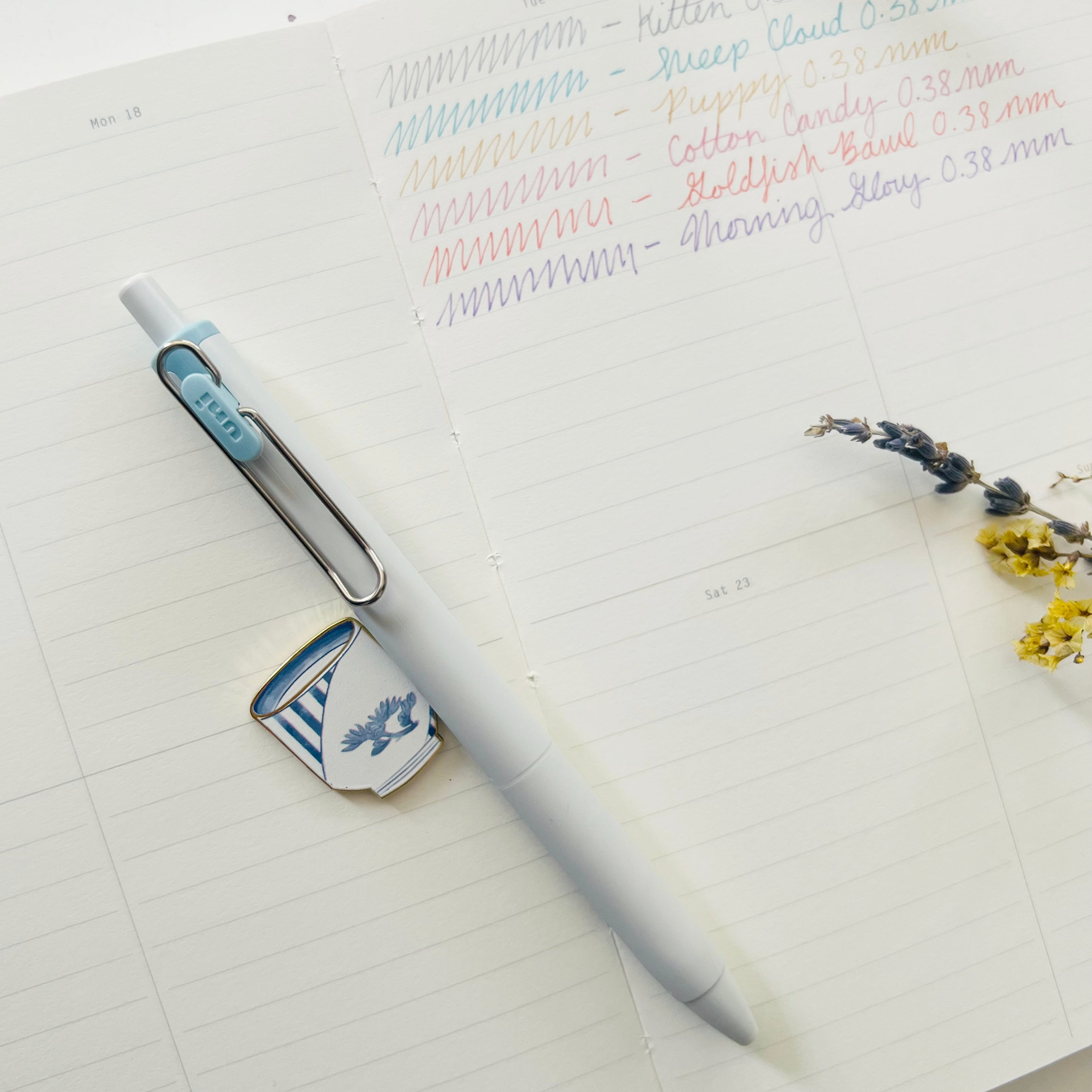 Introducing the charming Uni-ball One pens from the Soft Color Summer Collection! Featuring colors like Puppy, Cotton Candy, Morning Glory, Goldfish Bowl, Kitten, and Sleep Cloud, these limited-edition gel pens are perfect for precise writing. With a unique ink formula that resists absorption, the colors appear bolder and more vibrant. The fast-drying, smooth-gliding ink ensures a delightful writing experience, while the wide-opening clip makes it easy to attach to notebooks or documents. Enjoy crisp, vivid lines with these beautiful pens!