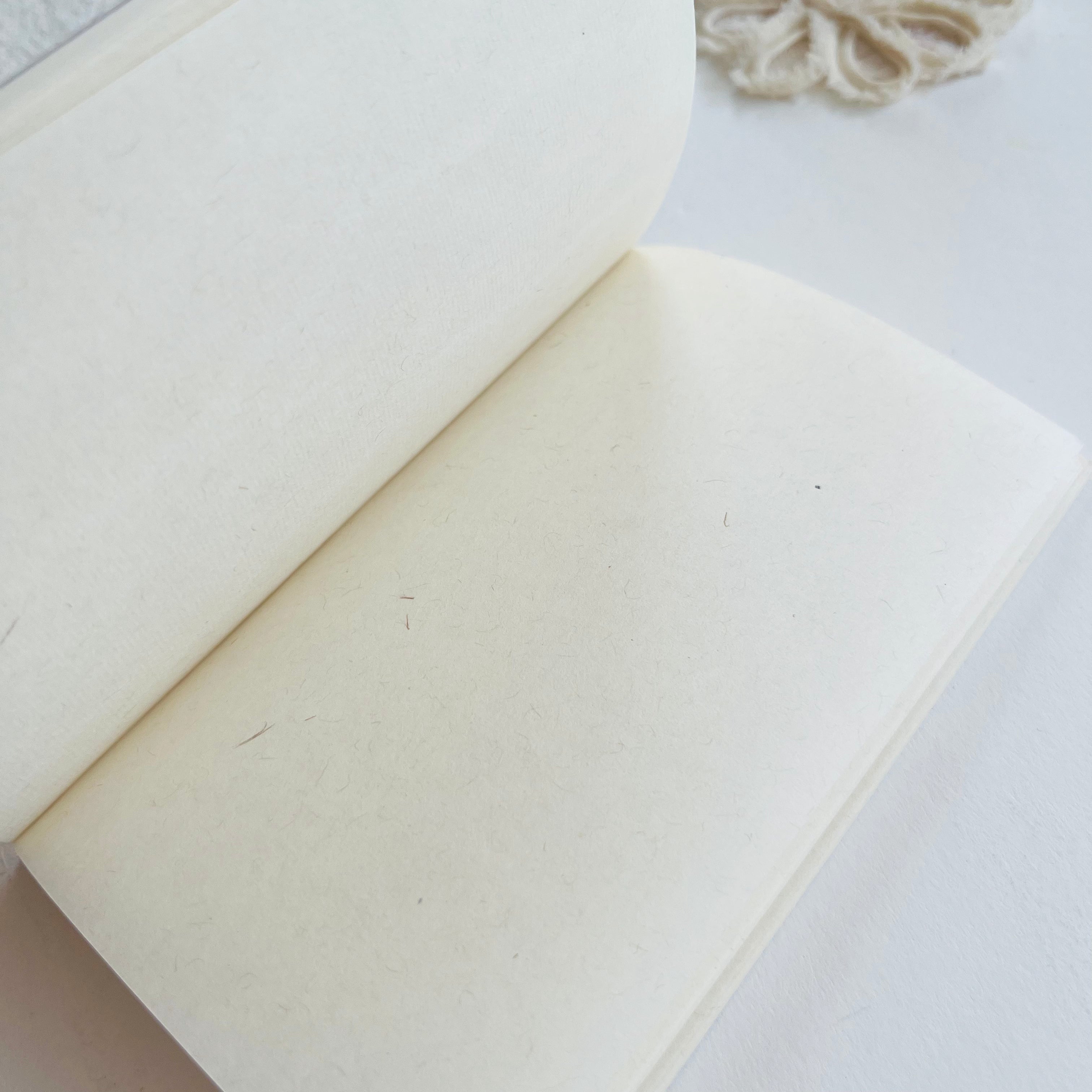 This slim A6 memo notebook features FUJI ROKKA washi paper, a material optimized for fountain pen ink. Its smudge-resistant, comfortable writing surface makes it ideal for both fountain pens and glass pens. The pages are easily detachable, allowing for use as a memo pad or short notes. Available in two finishes: a warm white and a textured beige. The cover features a design that can be used upright or left, opening vertically or horizontally.